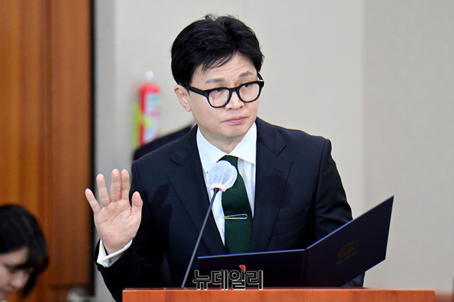 한동훈 법무부 장관이 11일 오전 국회에서 열린 법무부 국정감사에서 증인선서를 하고 있다.