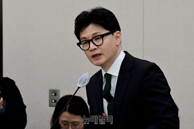 한동훈 법무부 장관이 11일 오전 국회에서 열린 법무부 국정감사에서 업무보고를 하고 있다.