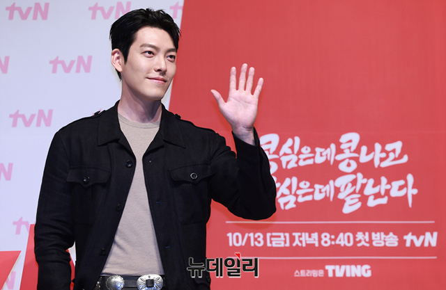 배우 김우빈이 11일 오후 서울 강남구 엘리에나호텔에서 열린 tvN 예능 '콩 심은 데 콩 나고 팥 심은 데 판 난다(이하 콩콩팥팥)' 제작보고회에서 포토타임을 갖고 있다.