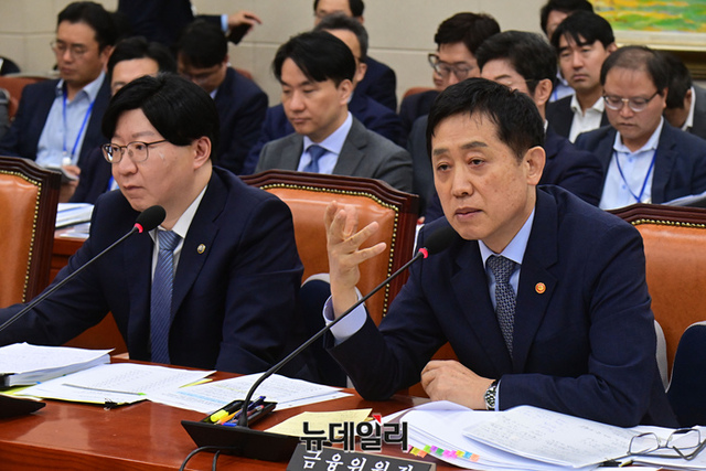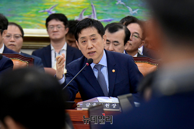 김주현 금융위원장이 11일 국회에서 열린 정무위원회의 금융위원회에 대한 국정감사에서 의원원들의 질문에 답하고 있다.