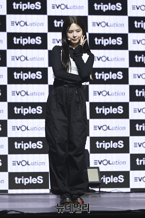 24인조 다국적 걸그룹 트리플에스(tripleS)의 네 번째 유닛그룹 에볼루션(EVOLution) 코토네가 11일 오후 서울 광진구 예스24라이브홀에서 열린 첫 미니앨범 '무적(MUJUK)' 쇼케이스에서 포토타임을 갖고 있다.유닛그룹 에볼루션은 코토네, 김채연, 김유연, 마유, 이지우, 김수민, 김나경, 곽연지로 구성된 다국적 그룹이다.데뷔앨범 '무적(MUJUK)'은 타이틀곡 '인빈시블(Invincible)'을 포함해 8곡을 담았다. 음원은 오후 6시 공개.