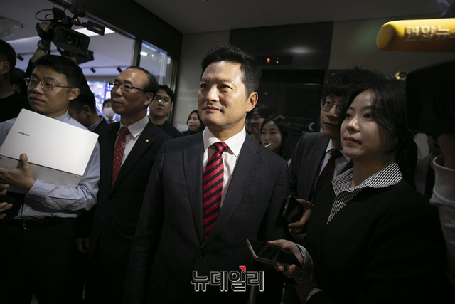 [포토] 김태우 후보 선거사무실 떠나는 이철규 사무총장