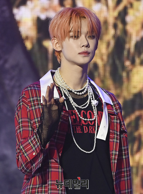 보이그룹 '투모로우바이투게더(TOMORROW X TOGETHER)' 연준이 12일 오후 서울 동대문구 경희대학교 평화의전당에서 열린 정규 3집 '이름의 장 : 프리폴(FREEFALL)' 발매기념 쇼케이스에서 포토타임을 갖고 있다.
