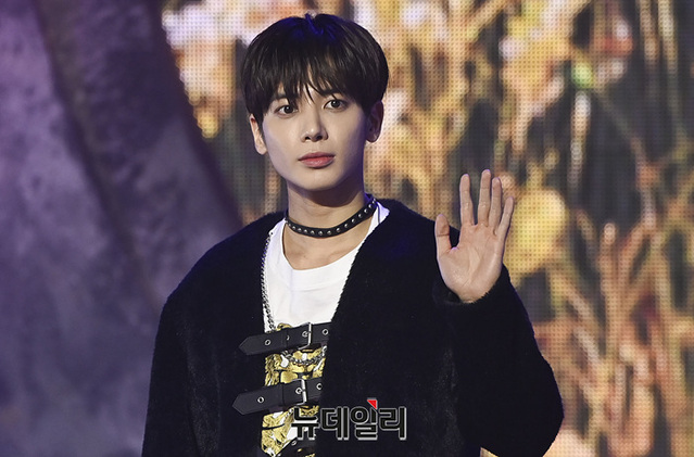 보이그룹 '투모로우바이투게더(TOMORROW X TOGETHER)' 태현이 12일 오후 서울 동대문구 경희대학교 평화의전당에서 열린 정규 3집 '이름의 장 : 프리폴(FREEFALL)' 발매기념 쇼케이스에서 포토타임을 갖고 있다.