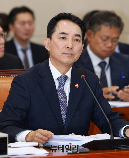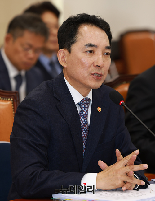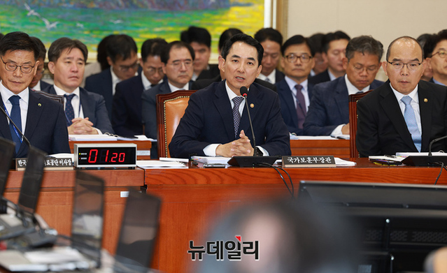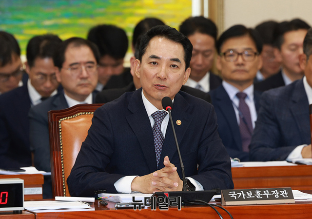 박민식 국가보훈부 장관이 13일 국회 정무위원회에서 열린 국가보훈부 등에 대한 국정감사에서 정율성 기념사업과 관련한 질문에 답하고 있다.