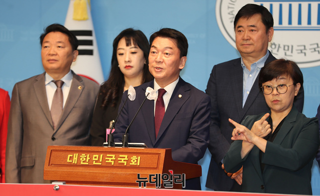 안철수 국민의힘 의원이 16일 오전 국회 소통관에서 이준석 전 대표 제명 촉구 기자회견을 하고 있다.