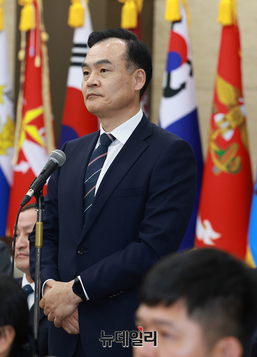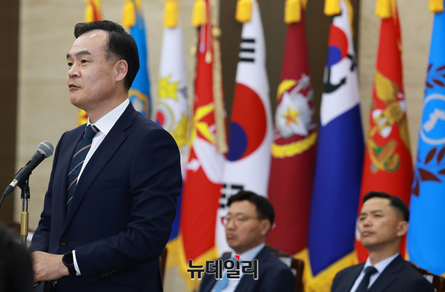 허태근 국방부 국방정책실장이 16일 오후 서울 용산구 국방부에서 열린 국회 법제사법위원회의 국방부 군사법원에 대한 국정감사에서 질의에 답하고 있다.
