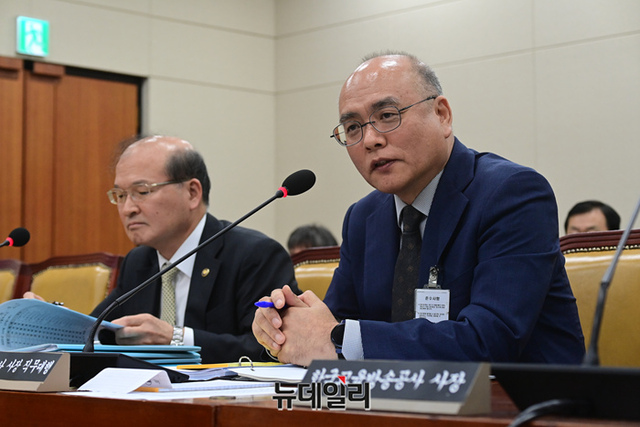 김덕재 한국방송공사(KBS) 사장 직무대행이 17일 국회에서 열린 과학기술정보방송통신위원회 국정감사에서 의원들의 질문에 답하고 있다.