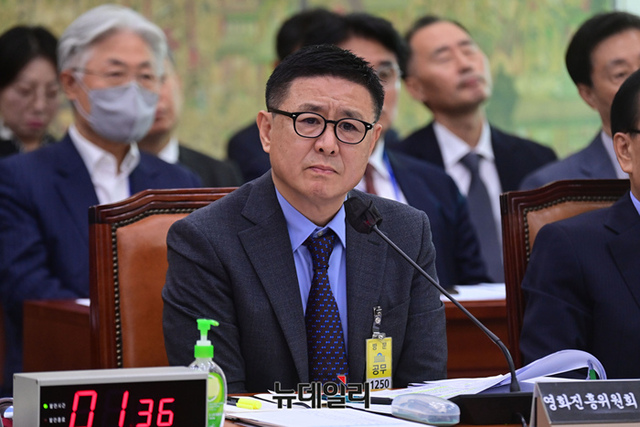 박기용 영화진흥위원회 위원장이 17일 국회에서 열린 문화체육관광위원회의 한국콘텐츠진흥원, 한국문화정보원, 한국문화관광연구원, 세종학당재단, 영화진흥위원회 등 국정감사에서 의원들의 질문에 답하고 있다.