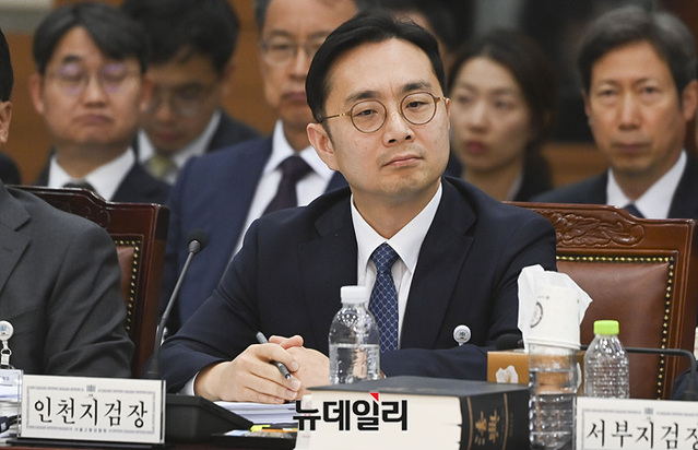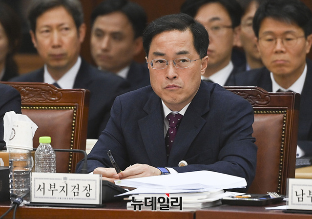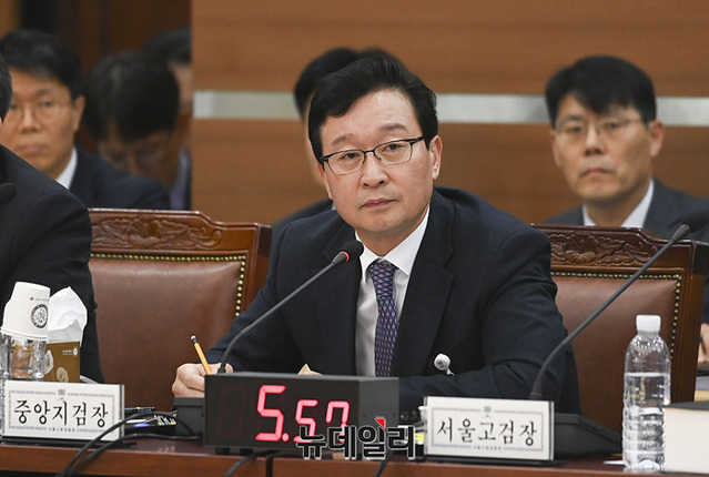 서울지방검찰청 등 11개 검찰청 검사장들이 17일 오후 서울 서초구 서울고등검찰청에서 열린 국회 법제사법위원회의 서울지방검찰청 등 11개 검찰청 국정감사에서 의원들의 질문에 답하고 있다.
