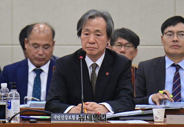 정기석 국민건강보험공단 이사장이 18일 국회에서 열린 보건복지위원회의 국민건강보험공단·건강보험심사평가원에 대한 국정감사에서 의원들의 질문에 답하고 있다.