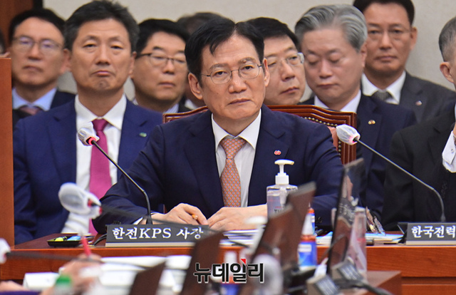 김홍연 한전KPS 사장이 19일 오전 국회에서 열린 산업통상자원중소벤처기업위원회의 한국전력공사 등에 대한 국정감사에 참석해 앉아 있다.