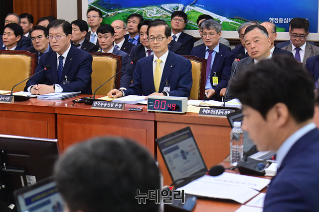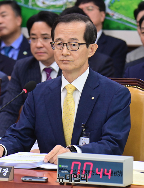 손태락 한국부동산원 원장이 19일 국회에서 열린 국토교통위원회의 한국부동산원·주택도시보증공사 등에 대한 국정감사에서 의원들의 질문에 답하고 있다.
