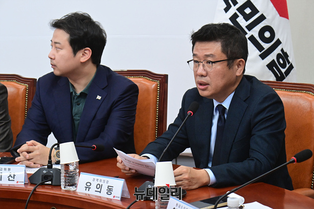 유의동 국민의힘 정책위의장 19일 국회에서 열린 최고위원회에 참석해 모두발언을 하고 있다.