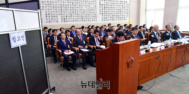 김흥준 부산고등법원장이 20일 국회 법제사법위원회에서 열린 부산지법 등에 대한 국정감사에서 참고인으로 출석한 '부산 돌려차기' 사건 피해자 관련 질의에 답변하고 있다.