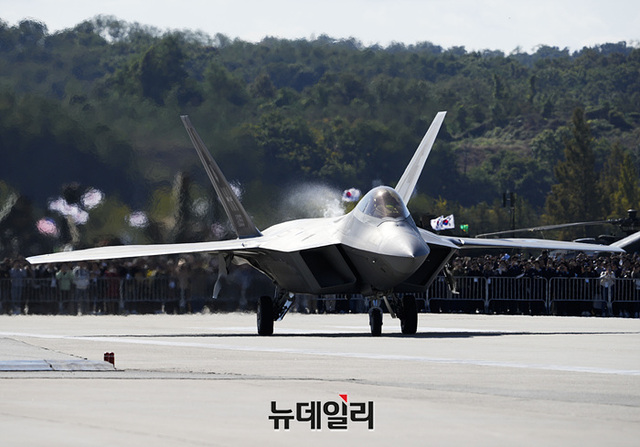 [포토] 관람객 시선 끄는 세계최강 전투기 'F-22 랩터'
