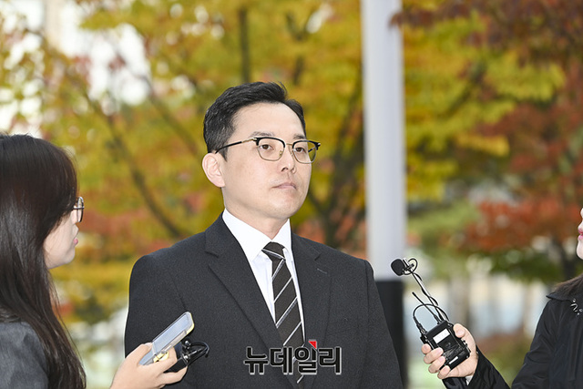더불어민주당 이재명 대표 배우자 김혜경의 법인카드 유용 의혹을 폭로한 전 경기도청 별정직 직원 조명현씨가 국민권익위원회 신고인 신분으로 조사받기 위해 23일 오전 경기 수원지방검찰청으로 출석하며 취재진의 질문에 답하고 있다. (경기 성남=서성진 기자)