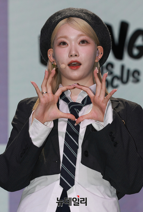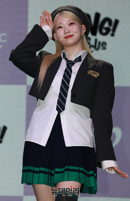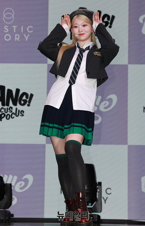 걸그룹 빌리(Billlie) 츠키가 23일 오후 서울 마포구 신한플레이 스퀘어 라이브홀에서 열린 첫 번째 싱글앨범 쇼케이스에서 포토타임을 갖고 있다.
