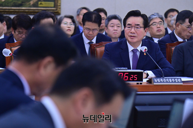 정황근 농림축산식품부 장관이 23일 오후 국회에서 열린 농림축산식품해양수산위원회의 농림축산식품부 및 소관기관 종합감사에서 의원들의 질물에 답하고 있다.