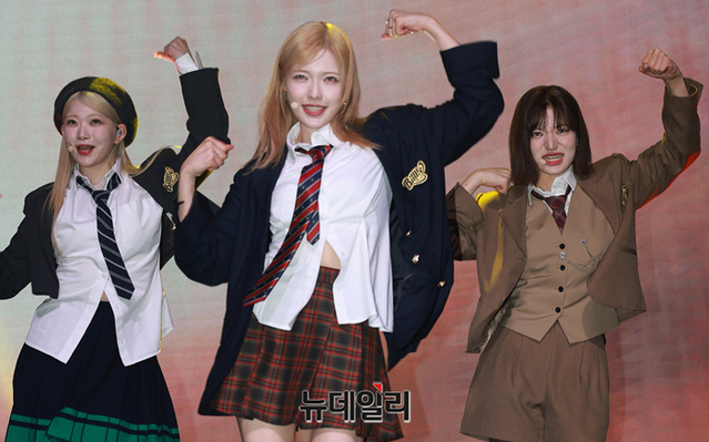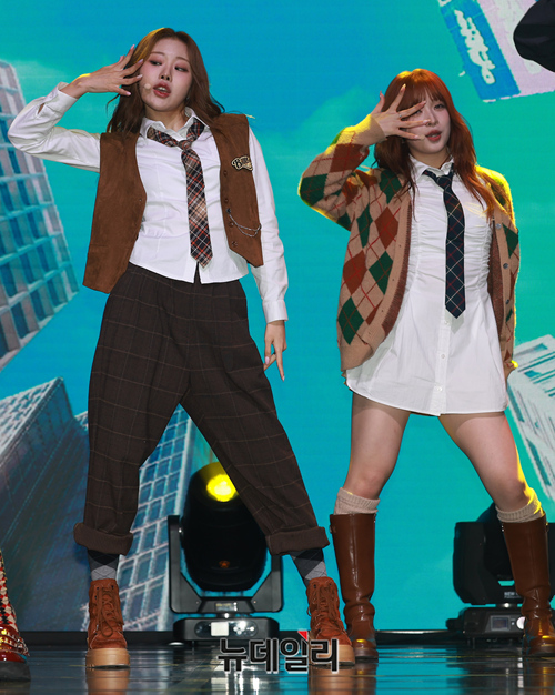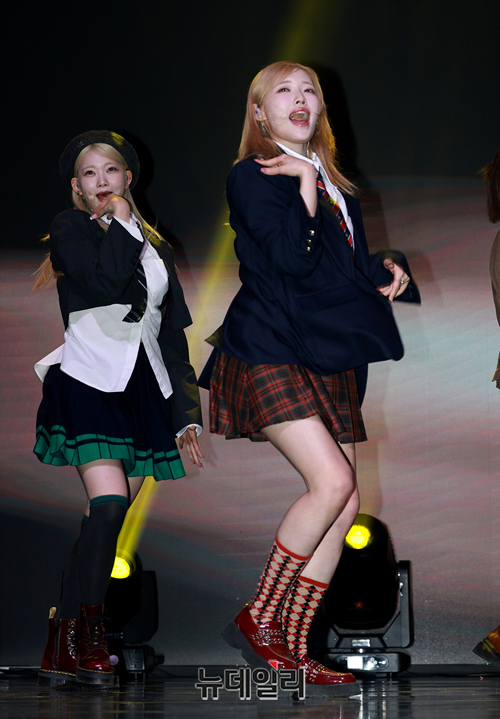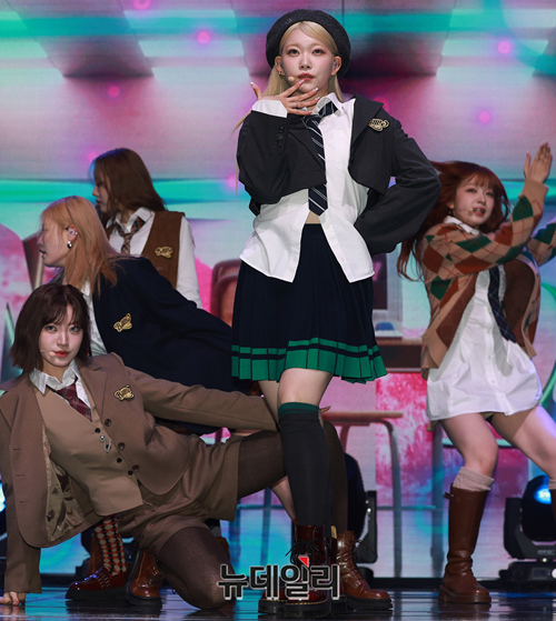 걸그룹 빌리(Billlie)가 23일 오후 서울 마포구 신한플레이 스퀘어 라이브홀에서 열린 첫 번째 싱글앨범 쇼케이스에서 타이틀곡 무대를 선보이고 있다.