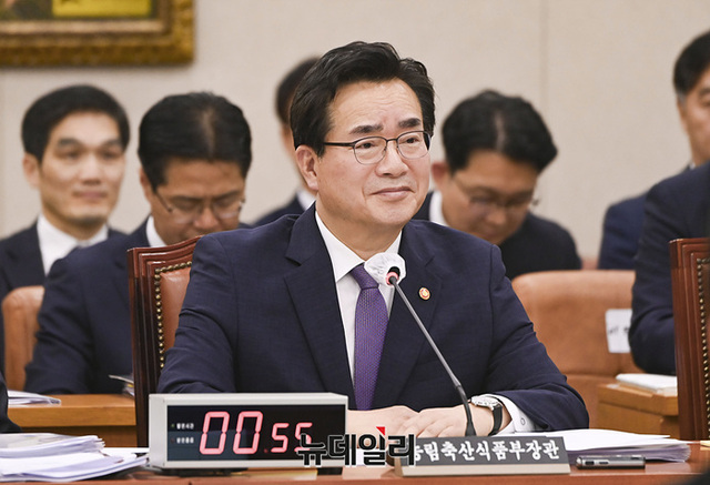 정황근 농림축산식품부 장관이 23일 오후 국회에 열린 농림축산식품해양수산위원회의 농림축산식품부 및 소관기관 종합감사에서 의원들의 질의에 답하고 있다.