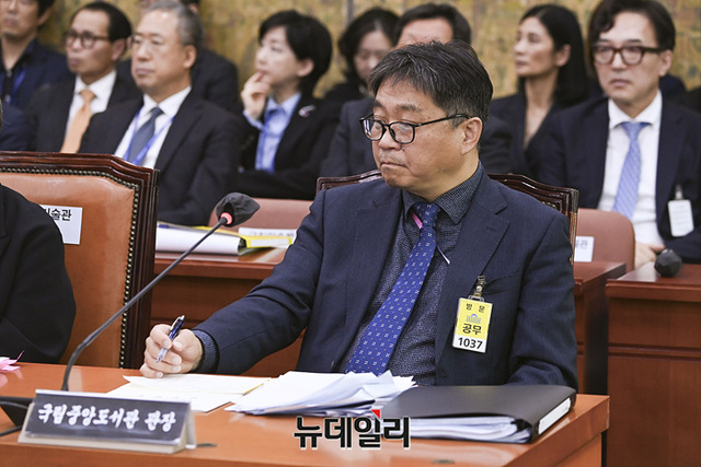 김일환 국립중앙도서관장 직무대리가 23일 오후 국회에서 열린 문화체육관광위원회 국정감사의 국립중앙박물관 등에 대한 국정감사에 참석하고 있다.