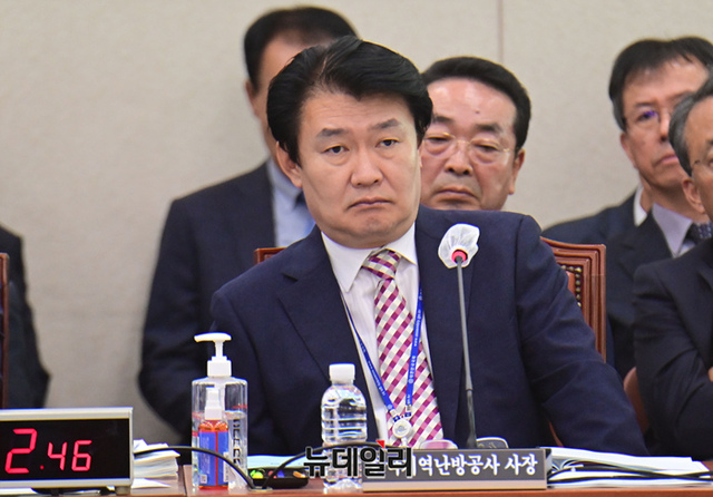 정용기 한국지역난방공사 사장이 24일 국회에서 열린 산업통상자원중소벤처기업위원회의 한국석유공사, 한국가스공사, 한국에너지공단 등에 대한 국정감사에서 의원들의 질의를 듣고 있다.