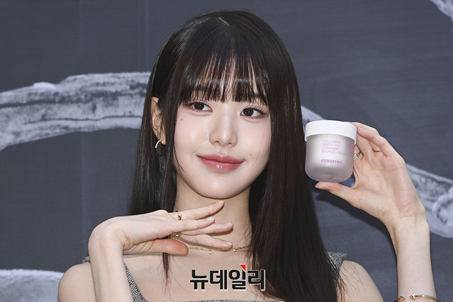 뷰티브랜드 이니스프리(Innisfree) 앰베서더 아이브 장원영이 24일 오후 서울 성동구에서 열린 플래그십 스토어 '이니스프리 디아일 성수' 오픈기념 포토행사에서 포즈를 취하고 있다.