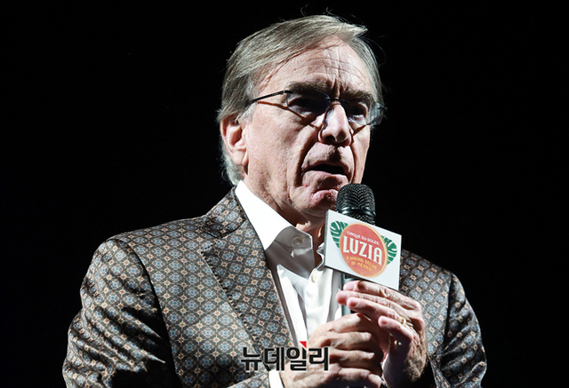 다니엘 라마르 태양의서커스 부회장이 24일 오후 서울 송파구 잠실종합운동장 빅탑에서 열린 루치아 프레스콜에서 인사말을 하고 있다.