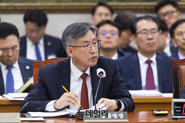 김종욱 해양경찰청장이 25일 오후 국회에서 열린 농림축산식품해양수산위원회의 해양수산부 및 소관기관에 대한 종합감사에서 의원들의 질의에 답하고 있다.