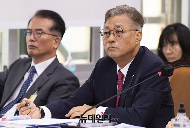강중구 건강보험심사평가원장이 25일 오후 국회에서 열린 보건복지위원회의 보건복지부, 질병관리청, 식품의약품안전처 등에 대한 종합감사에서 의원들의 질의를 듣고 있다.