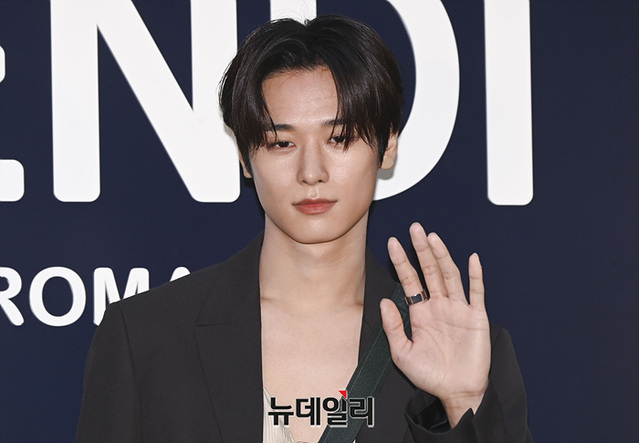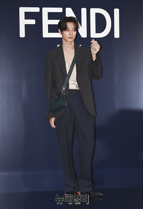 더보이즈 주연이 25일 오후 서울 강남구 팔라초 펜디 서울에서 열린 패션브랜드 펜디(FENDI)의 '2023-2024 윈터 컬렉션 런칭 기념' 포토행사에서 포즈를 취하고 있다.