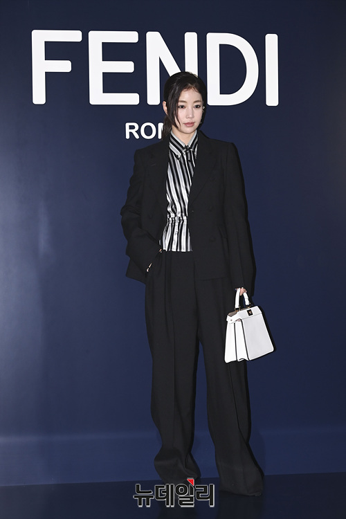 배우 기은세가 25일 오후 서울 강남구 팔라초 펜디 서울에서 열린 패션브랜드 펜디(FENDI)의 '2023-2024 윈터 컬렉션 런칭 기념' 포토행사에서 포즈를 취하고 있다.