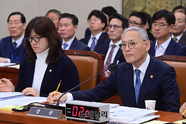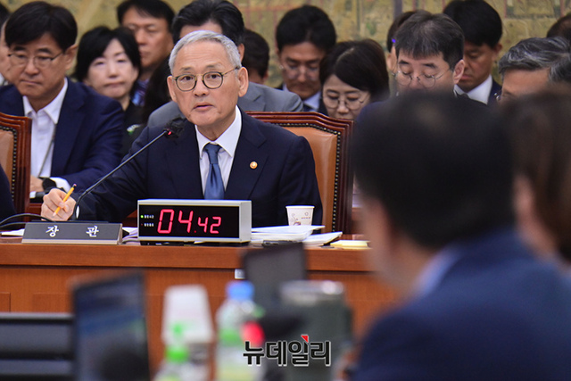 유인촌 문화체육관광부 장관이 26일 국회 문화체육관광위원회에서 열린 종합감사에서 답변을 하고 있다.