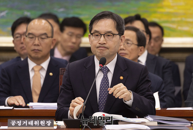 한기정 공정거래위원장이 26일 오전 국회에서 열린 정무위원회의 국가보훈부, 국무조정실, 국무총리비서실, 공정거래위원회, 국민권익위원회, 개인정보보호위원회에 대한 종합감사에서 의원들의 질의에 답변하고 있다.