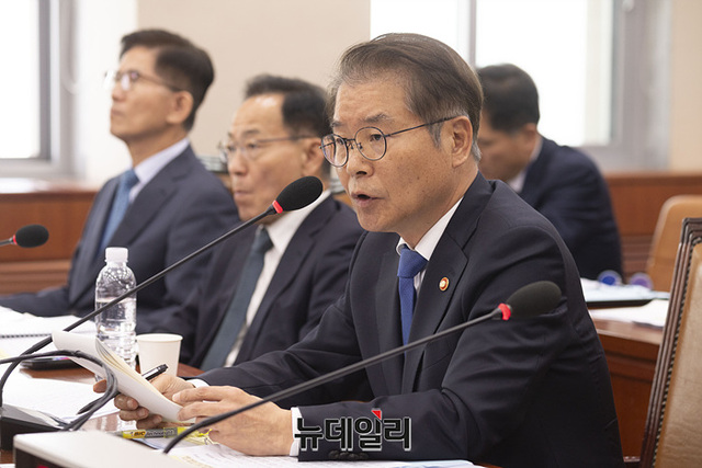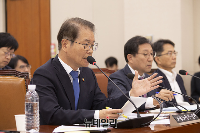 이정식 고용노동부 장관이 26일 오전 국회에서 열린 환경노동위원회의 고용노동부 등에 대한 종합감사에서 의원들의 질문에 답변하고 있다.