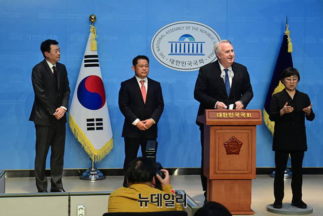 인요한 국민의힘 혁신위원장이 26일 오후 국회 소통관에서 당 최고위원회의에서 의결된 혁신위 인선 결과를 발표하고 배경을 설명하고 있다.