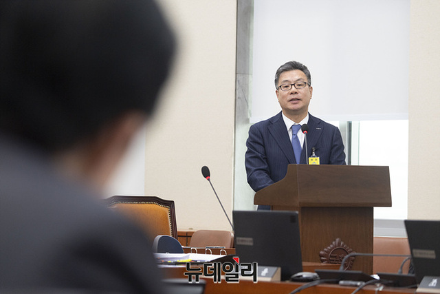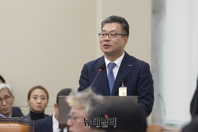 정일문 한국투자증권 대표이사가 26일 오후 국회에서 열린 정무위원회의 국가보훈부, 국무조정실, 국무총리비서실, 공정거래위원회, 국민권익위원회, 개인정보보호위원회에 대한 종합감사에서 의원들의 질의에 답변하고 있다.