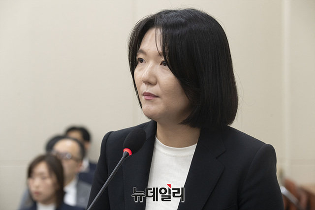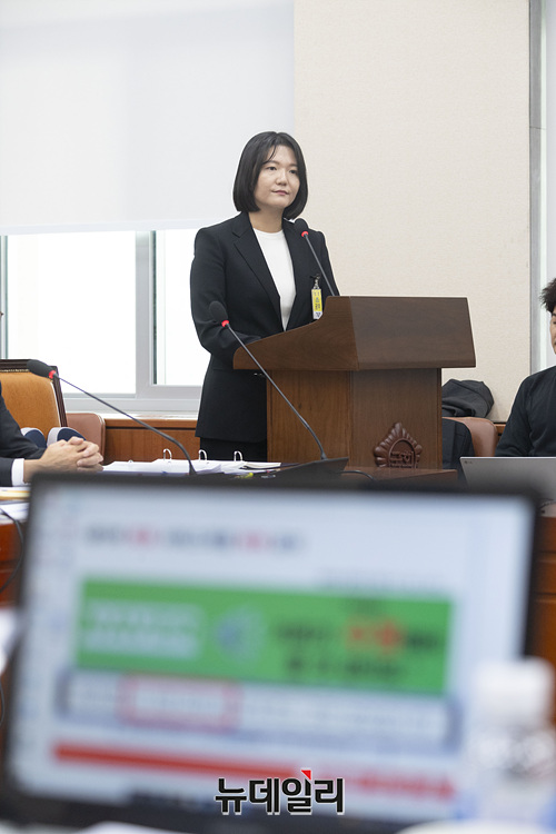 최수연 네이버 대표이사 사장이 26일 오후 국회에서 열린 정무위원회의 국가보훈부, 국무조정실, 국무총리비서실, 공정거래위원회, 국민권익위원회, 개인정보보호위원회에 대한 종합감사에서 의원들의 질의에 답변하고 있다.