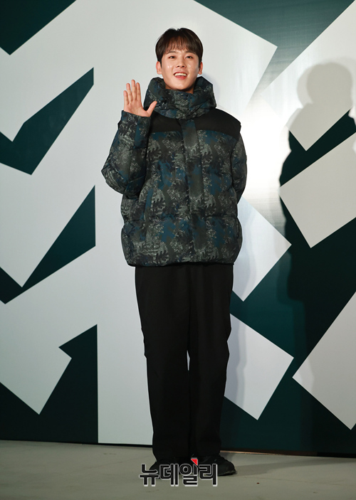 배우 이정하가 26일 오후 서울 용산구 레이어20 스튜디오에서 열린 코오롱스포츠 창립 50주년 기념 행사에서 포즈를 취하고 있다.