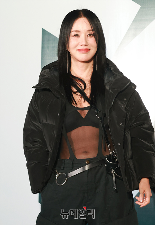 배우 엄정화가 26일 오후 서울 용산구 레이어20 스튜디오에서 열린 코오롱스포츠 창립 50주년 기념 행사에서 포즈를 취하고 있다.