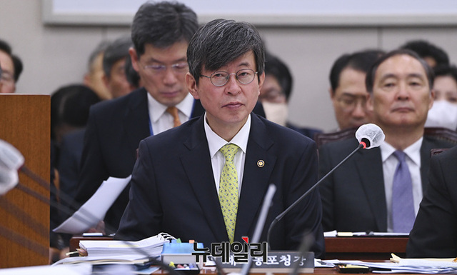 이기철 재외동포청장이 27일 오전 국회에서 열린 외교통일위원회의 외교부, 통일부, 재외동포청, 한국국제협력단 등에 대한 종합감사에서 의원의 질의에 답변하고 있다.