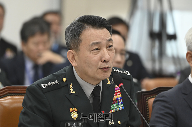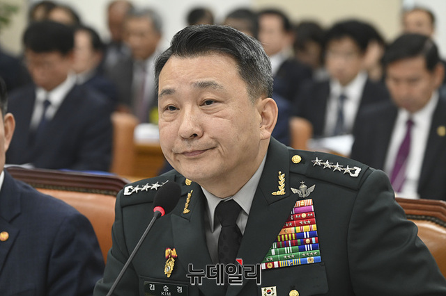 김승겸 합동참모본부 의장이 27일 오전 국회에서 열린 국방위원회의 국방부, 병무청, 방위사업청, 합동참모본부 등에 대한 종합감사에서 의원의 질의에 답하고 있다.