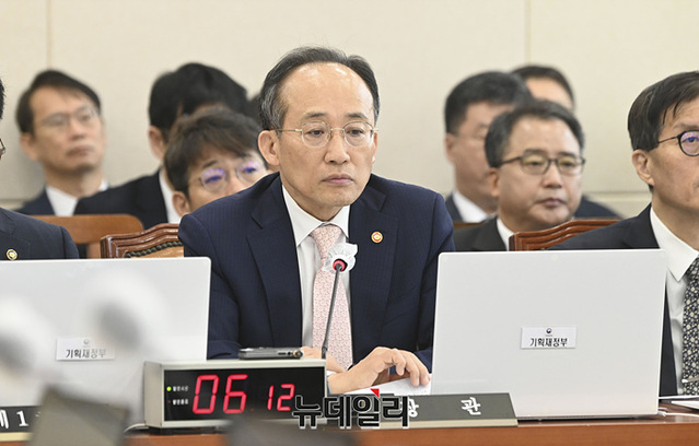추경호 기획재정부 장관이 27일 오전 국회에서 열린 기획재정위원회의 기획재정부, 한국은행, 한국수출입은행, 한국조폐공사, 한국투자공사, 한국재정정보원, 한국원산지정보원에 대한 종합감사에서 의원의 질의에 답하고 있다.