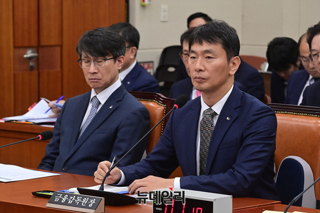 이복현 금융감독원장이 27일 국회에서 열린 정무위원회의 금융위원회 등에 대한 종합국정감사에서 의원들의 질문에 답하고 있다.