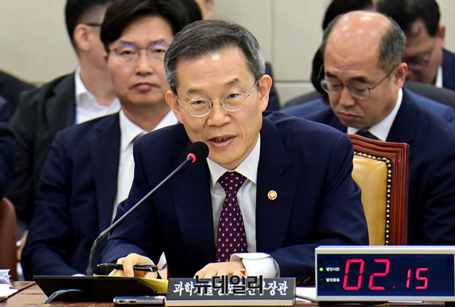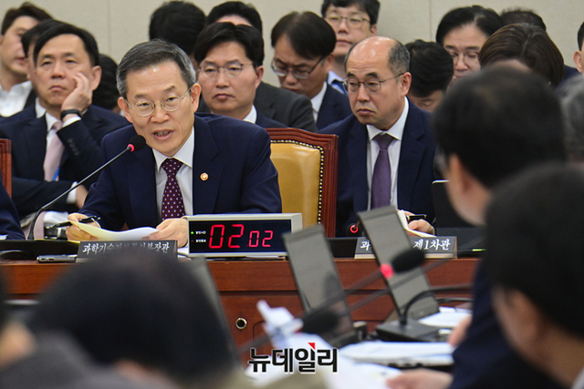 이종호 과학기술통신부 장관이 27일 국회에서 열린 과학기술정보방송통신위원회 종합감사에서 의원들의 질문에 답하고 있다.