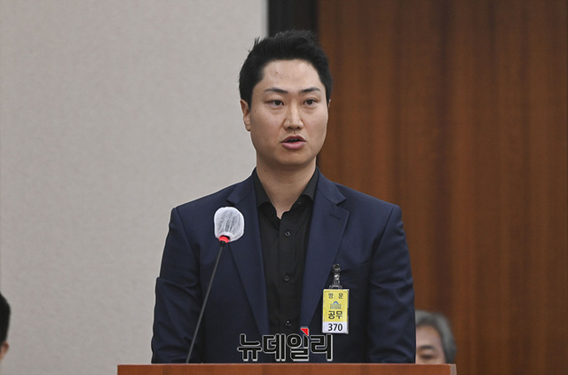 인태혁 (주)고투몰 입점 상인이 27일 오후 국회에서 열린 산업통상자원중소벤처기업위원회의 중소벤처기업부와 특허청에 대한 종합감사에서 참고인으로 출석해 발언하고 있다.