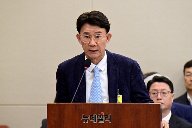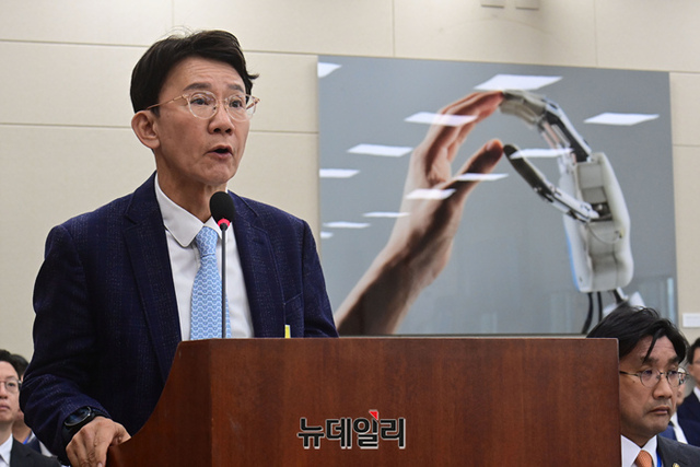 강봉구 삼성전자 부사장이 27일 국회에서 열린 산업통상자원위원회의 과학기술정보방송통신위원회의 과기부 등에 대한 종합국정감사에 참고인 신분으로 출석해 의원들의 질문에 답하고 있다.