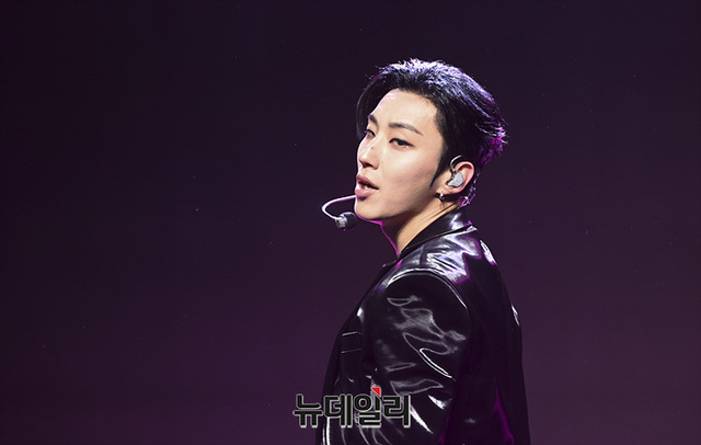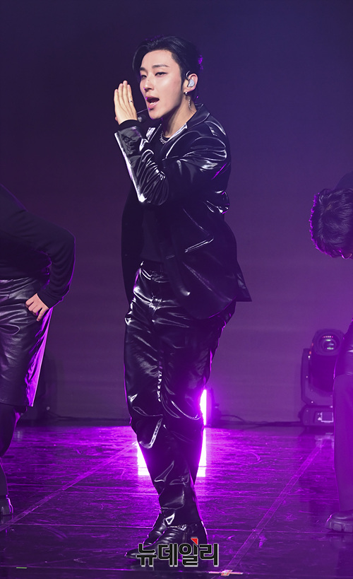 솔로가수 문종업이 30일 오후 서울 강남구 일지아트홀에서 열린 두 번째 미니앨범 '썸(SOME)' 발매 기념 오프라인 미디어 쇼케이스에서 타이틀곡 'X.O.X' 무대를 선보이고 있다.