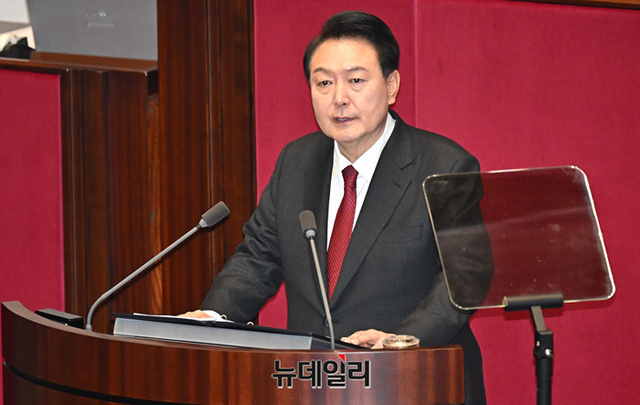 윤석열 대통령이 31일 국회 본회의장에서 2024년도 예산안에 대한 시정연설을 하고 있다. (사진=공동취재단)